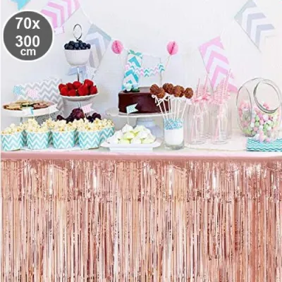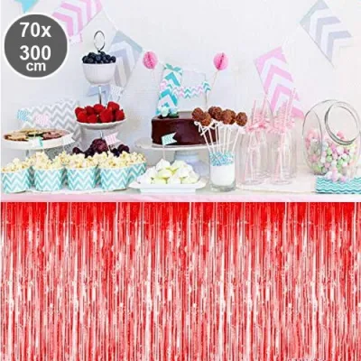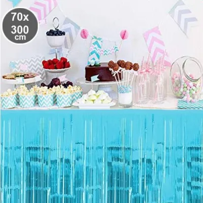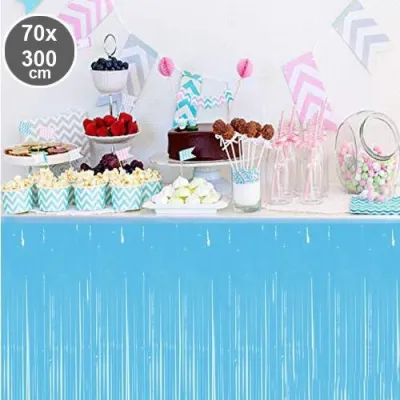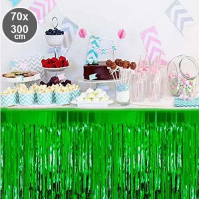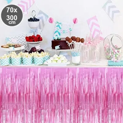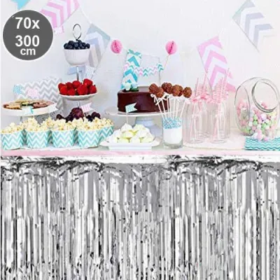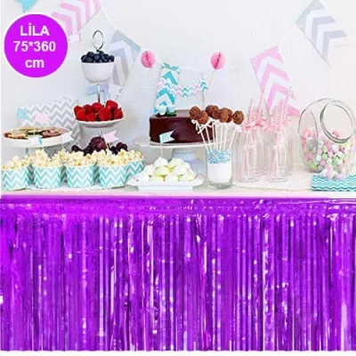 Parti davet ve organizasyonlarda masa etrafında oldukça şık görünen bu ürün son dönemlerde oldukça popüler bir üründür. Masanızı göz alıcı şıklığa kavuşturacak püsküllü folyo masa eteği hemen sipariş verin.