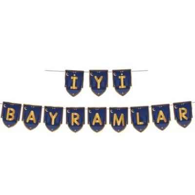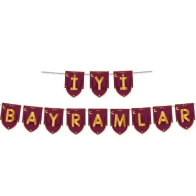 İyi Bayramlar banner süsü kapıya, duvara, perdeye, ağaçtan ağaca, hazırlamış olduğunuz masanın arkasına iki ucundan bant ile yapıştırarak veya iple bağlayarak uygulayabilirsiniz. 2 Parça halinde de kullanabilirsiniz.