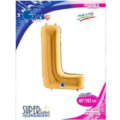 L Harf Folyo Balon Altın renginin şıklığı ve 100 cm lik devasa boyutu ile özel kutlamalarınıza göz kamaştırıcı bir alternatif sunar.Dilerseniz tek başına,dilerseniz diğer gold dekor ürünlerle birlikte kullanarak göz kamaştırıcı bir etki oluşturun.Gold L Harf Folyo Balon doğum günü,nişan,düğün,açılış,mezuniyet törenlerinde ihtişamlı bir dekorasyon ürünü olarak kullanılabilir.