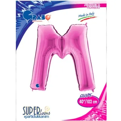 Doğum günü, düğün, mezuniyet, açılış ve tüm özel kutlamalar için şık bir dekorasyon ürünü: M Harfi Pembe Folyo Balon (100 cm)! Parlak folyo malzemeden üretilen bu büyük boy harf balon, parti alanına modern ve dikkat çekici bir görünüm kazandırır. İster tek başına, ister diğer harf ve rakam folyo balonlar ile kombin yaparak istediğiniz yazıyı oluşturabilirsiniz.