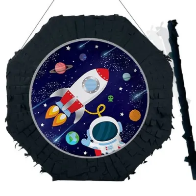 Uzay Pinyatanın üzerinde bulunan hazneden jelibon, çikolata, şeker, sakız, minik oyuncaklar, sticker ve benzeri ürünler doldurulur.