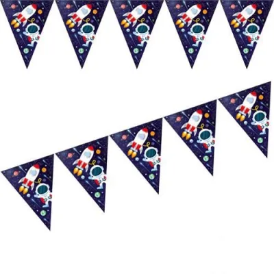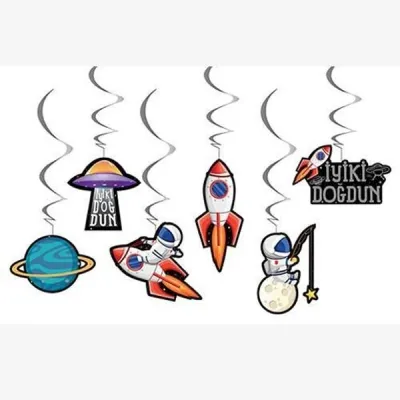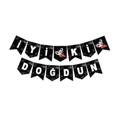 Uzay temalı doğum günü kutlamalarında masa çevresine, fotoğraf köşesine ya da giriş alanına asarak etkileyici bir atmosfer oluşturabilirsiniz. Siyah, gri ve koyu tonların uzay konseptiyle uyumu sayesinde partinize gizemli ve modern bir hava katar.