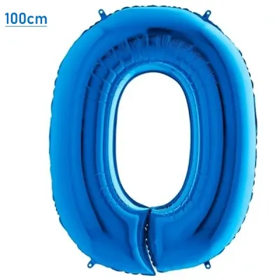 0 Rakam Folyo Balon - Mavi - 100 cm (40 inch)