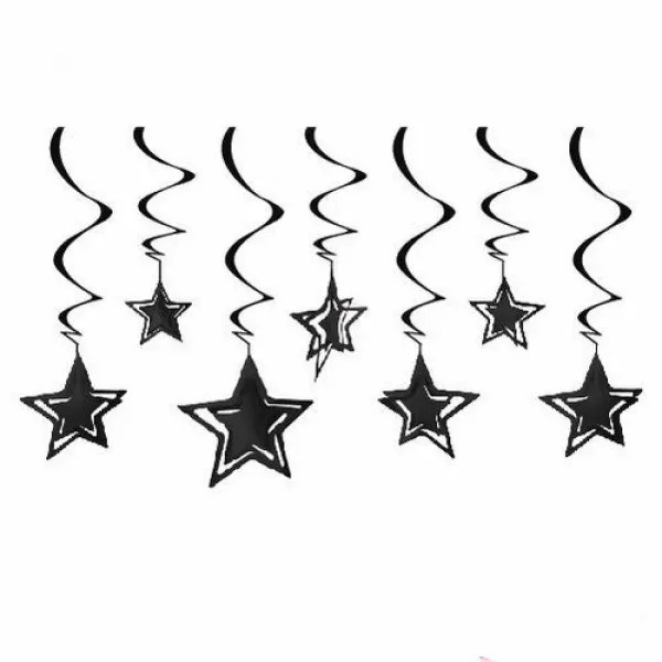 3D Yıldız Asmalı Tavan Süsü Siyah 10 Adet