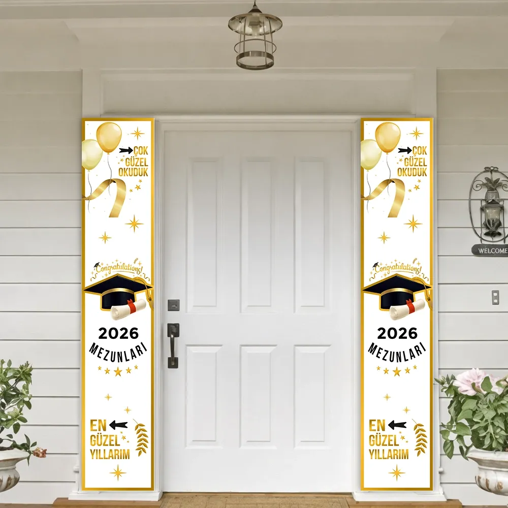 - Anahtar kelimeler: 2026 mezuniyet afişi, asma banner, mezuniyet süsleri, okul dekorasyon, kep töreni süsleri