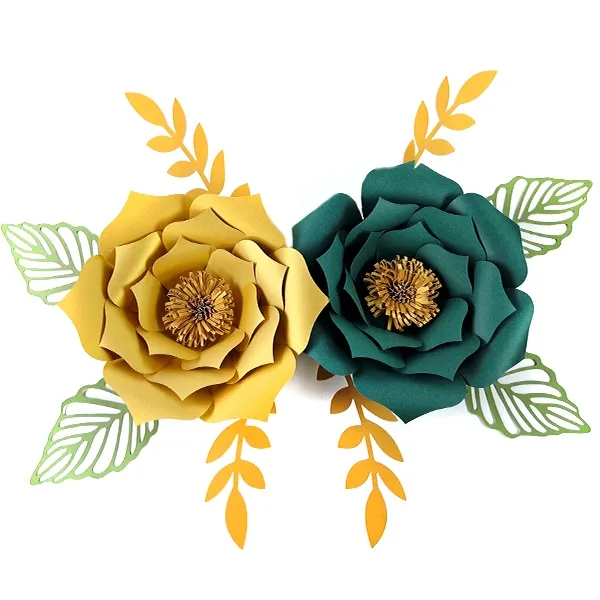 2'li (Yeşil - Gold) Kağıt Çiçek Seti
