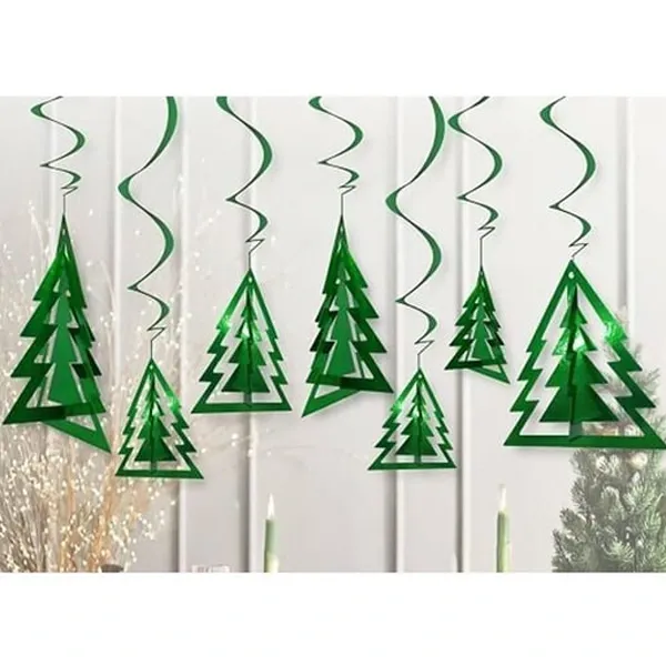 3D Yılbaşı Çam Ağacı Asmalı Tavan Süsü (10 Adet)