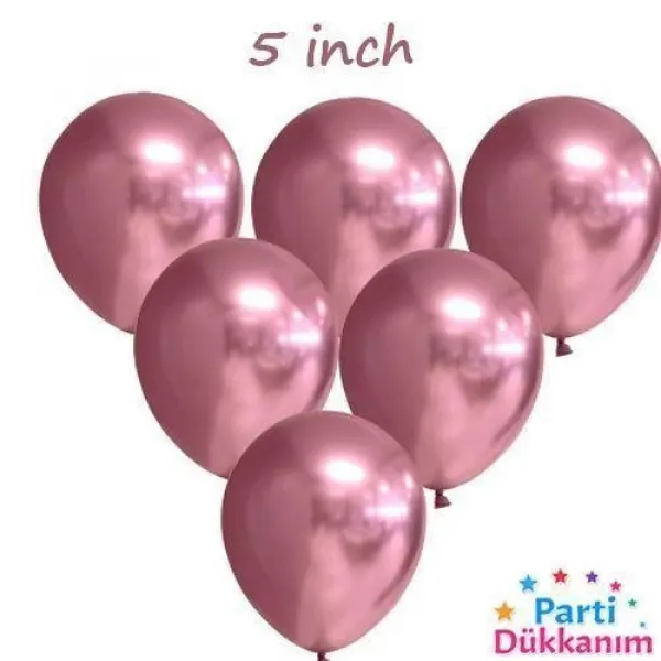 5 İnch Mini Pembe Krom Balon 10 Adet