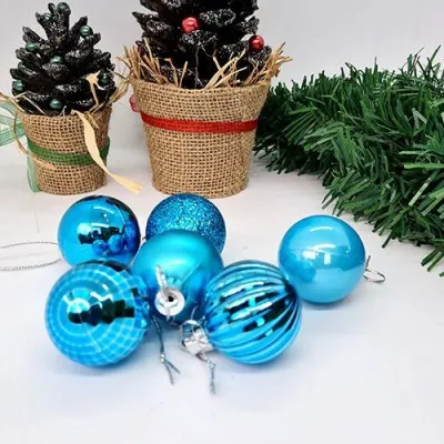 Açık Mavi Yılbaşı Top Süs Mat-Parlak-Simli-Aynalı 6 Adet 4 cm