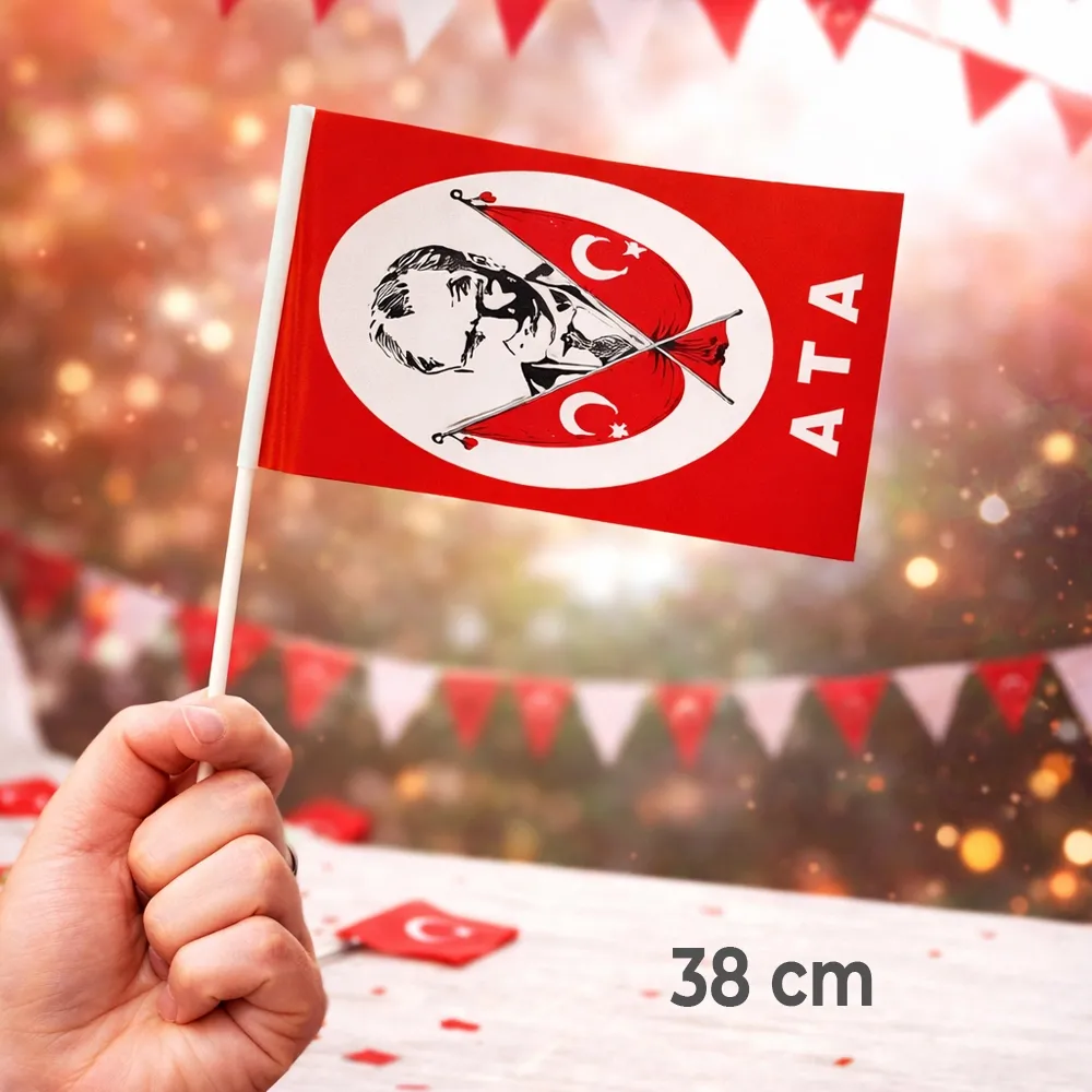 Atatürk Baskılı Çıtalı Bayrak (38 cm - 10 Adet),milli bayram kutlamaları, okul etkinlikleri ve resmi törenlerde kullanılan Atatürk temalı bayrak setlerinden biridir.