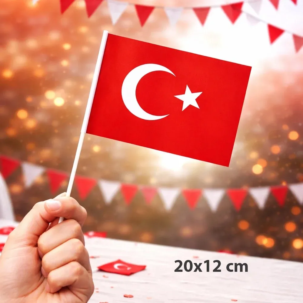 • Paket içerisinde 20x12 cm ölçüsünde 10 adet ay yıldız baskılı çıtalı Türk bayrağı bulunur