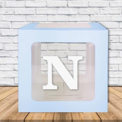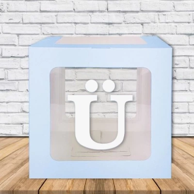 Şeffaf karton kutu size paket içinde demonte olarak gönderilir. Paket içerisinde kutu, harf ve harfi yapıştırmanız için çift taraflı bant bulunur.