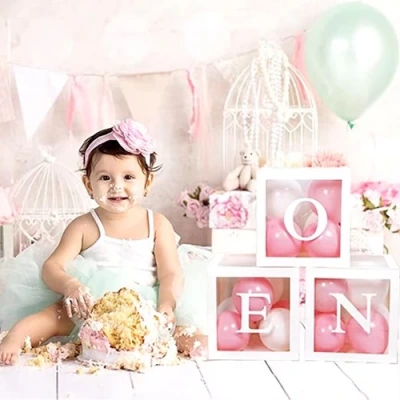 Kutu içine balon ve hayalinize göre farklı objeler koyabilirsiniz.