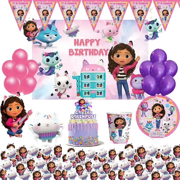 Gabby's Dollhouse temalı bir parti düzenlemek için ihtiyacınız olan tüm malzemeler Parti Dükkanım'da! Balonlardan dekorasyon ürünlerine, Gabby temalı tabak bardak setlerinden parti paketlerine kadar her şeyi bir arada bulabilir, unutulmaz bir doğum günü için kolayca sipariş verebilirsiniz.
