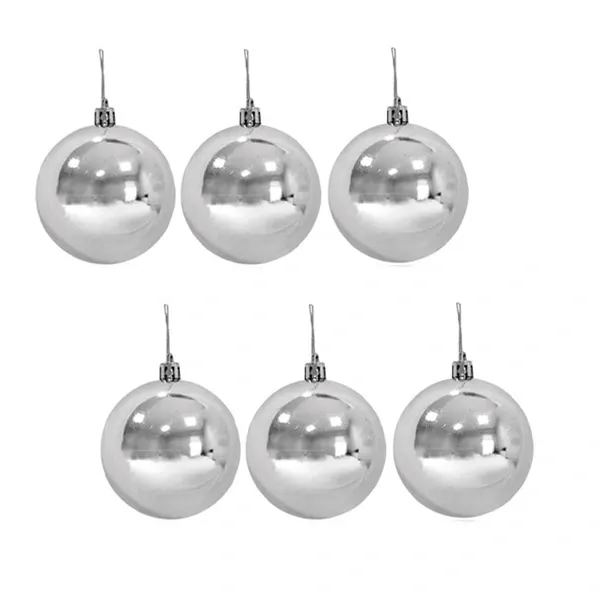 6 adet Gümüş top yılbaşı ağacı süsü