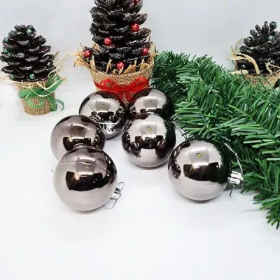 Çam Ağacı Süsleme Parlak Top Uzay Gri 6 Adet 6 cm