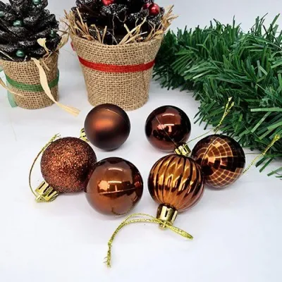 Çikolata Yılbaşı Top Süs Mat-Parlak-Simli-Aynalı 6 Adet 4 cm
