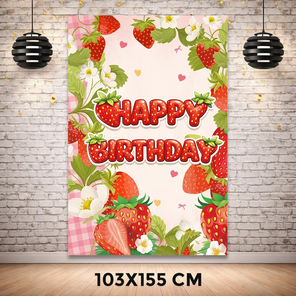 - Çilek temalı doğum günü süsleri ile uyumlu dikey afiş