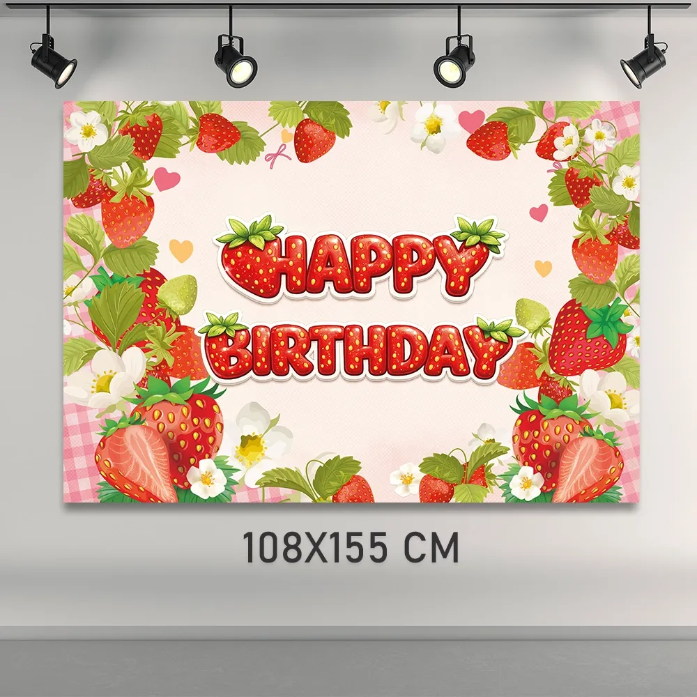 - Çilek temalı doğum günü süsleri ile uyumlu arka plan afişi