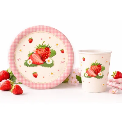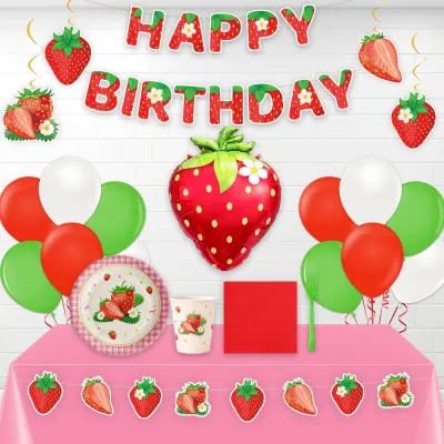- Çilek temalı doğum günü süsleri ile uyumlu tasarım