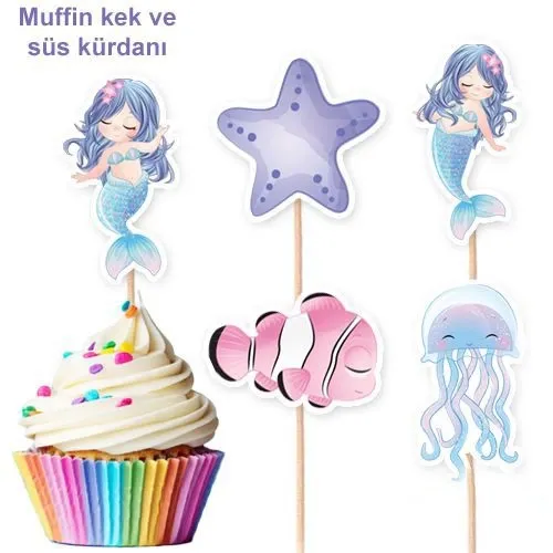 Doğum günü, özel gün ve davetlerinizde muffin cupcake, kanepe ve ikramlıkları Deniz Kızı Little kürdanlar ile süsleyebilirsiniz.
