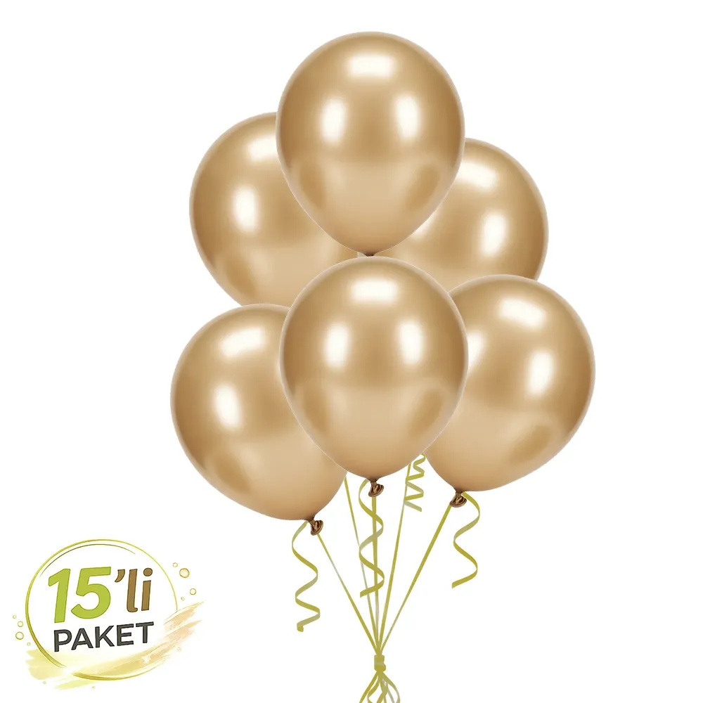 Gold Metalik Balon 15 Adet Parlak