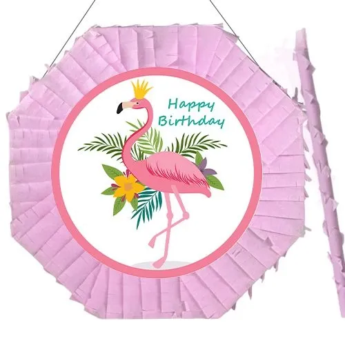 Flamingo Pinyatanın üzerinde bulunan hazneden jelibon, çikolata, şeker, sakız, minik oyuncaklar, sticker ve benzeri ürünler doldurulur.