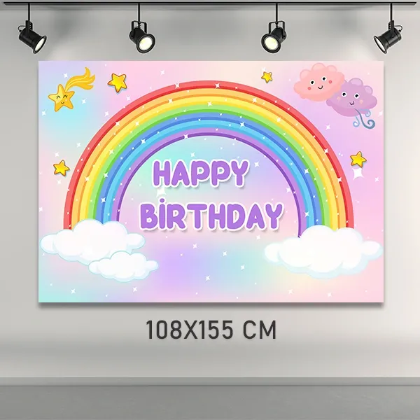 Gökkuşağı Temalı Doğum Günü Parti Afişi (108x155 cm)