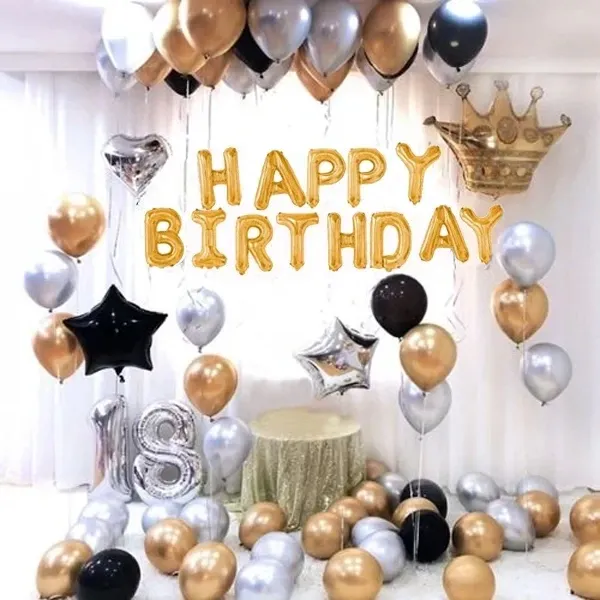 Gold Gümüş Siyah 18 Yaş Doğum Günü Süsleri Kombini Seti
