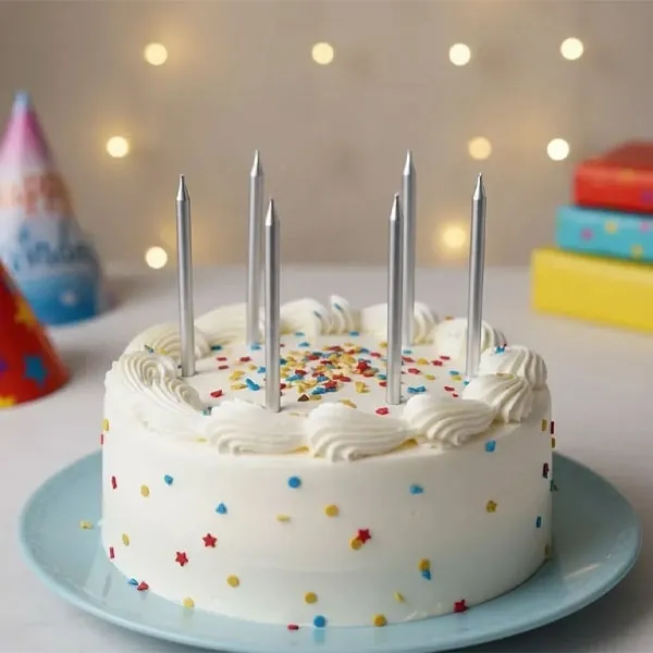 Doğum günü partilerinin olmazsa olmaz pastalarını Gümüş (Yaldızlı Gri) mumlar ile süsleyebilirsiniz.