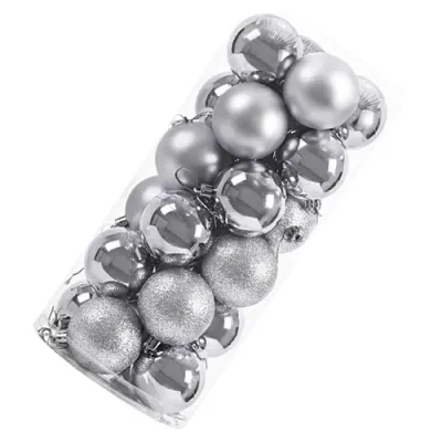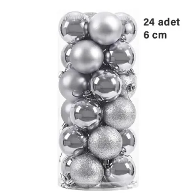 Gümüş Yılbaşı Topu Simli - Parlak - Mat 24 adet 6 cm