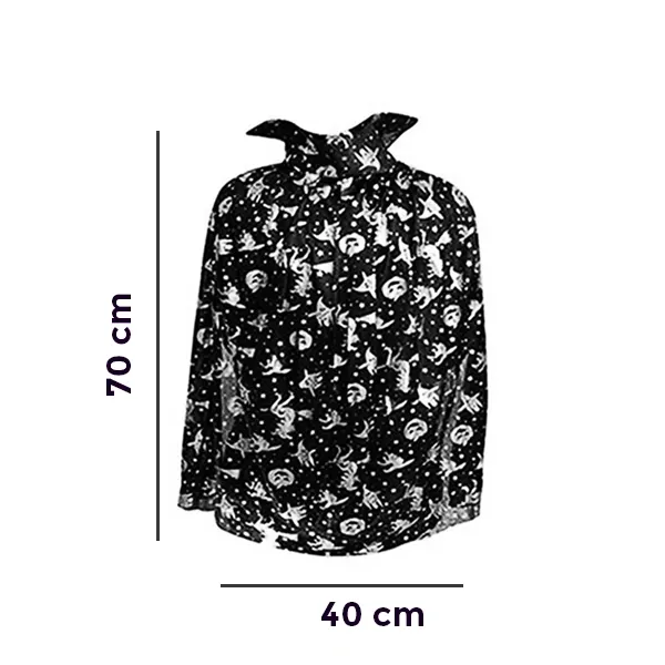 Yüksek kaliteli kumaştan üretilmiş olup nefes alabilir özelliktedir. Cadı şapkası elastik olması sebebi ile yetikin ve çocuklara uyum sağlamaktadır.