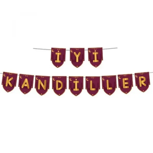 İyi Kandiller Yazısı Bordo Gold 160 cmAy Yıldız Kandil Ramazan Asma Süs Bordo 90x30 cm, fiyatı