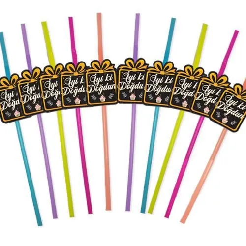 Doğum günü partinizde soğuk meşrubat içeceklerinizi daha keyifli hale getirebileceğiniz İyi Ki Doğdun Pipet.