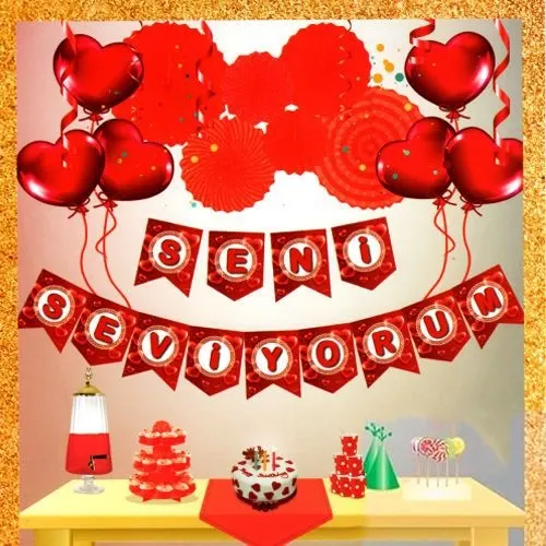 Seni Seviyorum yazısı pakett içerisinde 14 adet kart ve kurdela bulunur.
