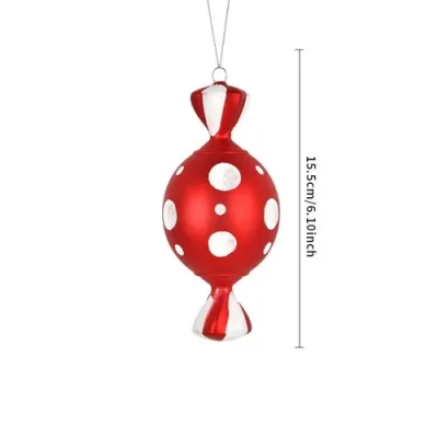 Kırmızı Beyaz Şeker Simli Puantiyeli Yılbaşı Ağacı Süsü 15 cm 1 Adet