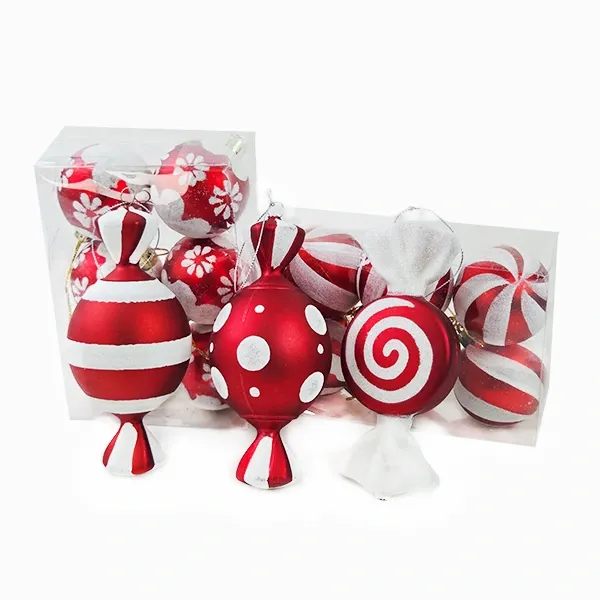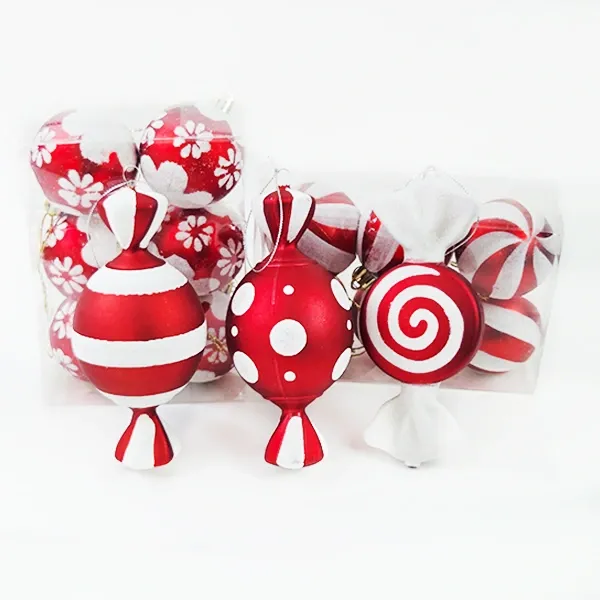 Kırmızı Beyaz Spiral Yılbaşı Topu 6 adet 6 cm -- 1 Paket