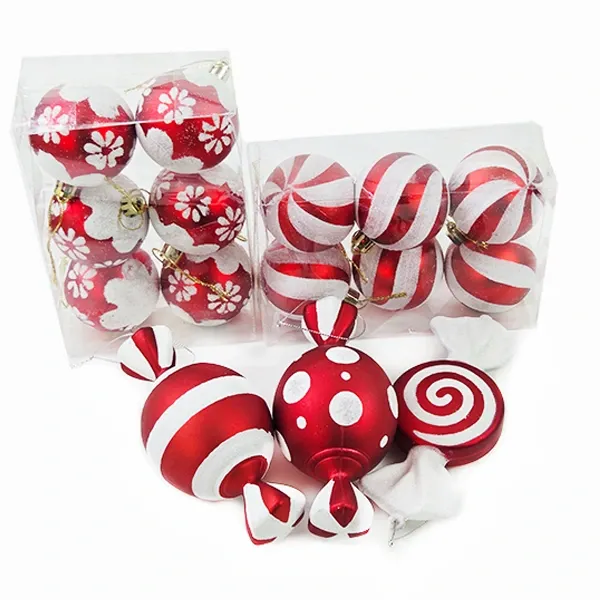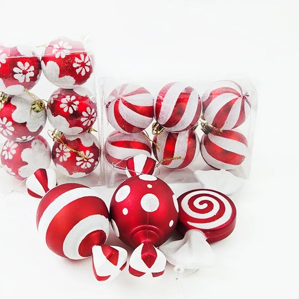 Kırmızı Beyaz Çiçekli Yılbaşı Topu 6 adet 6 cm -- 1 Paket