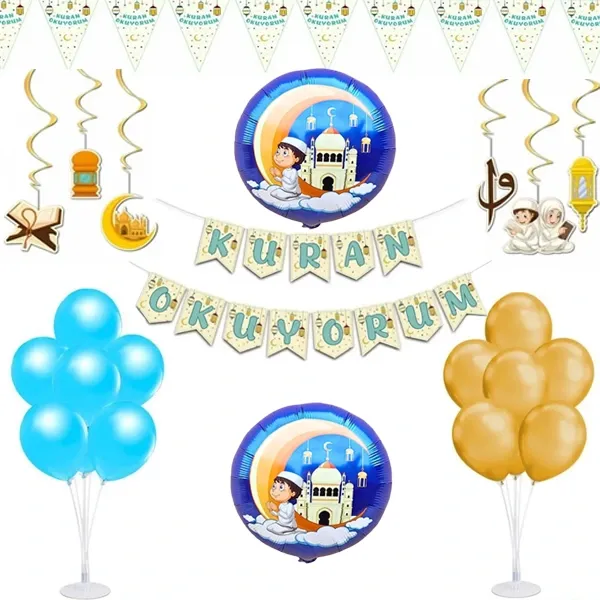 4. Kuran Öğreniyorum Mavi Folyo Balon (45 cm): 2 Adet
