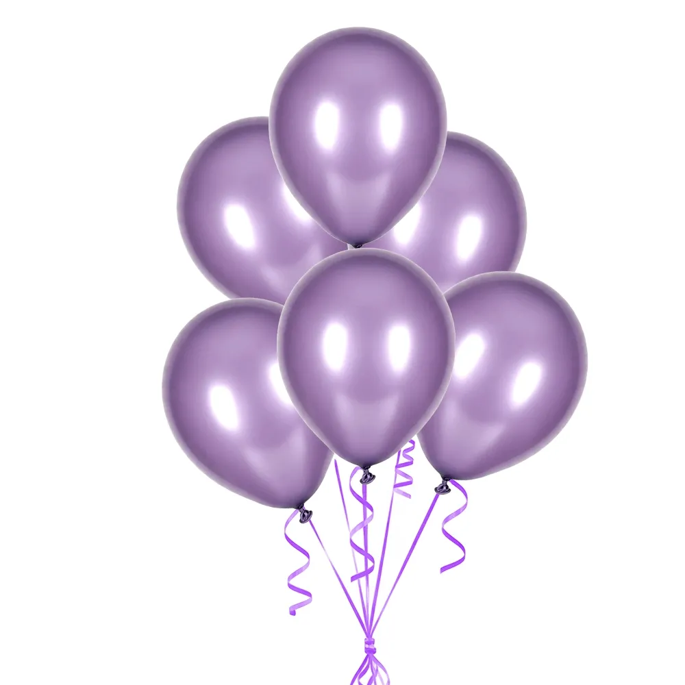 Lila metalik balonlar, parlak mor tonuyla dekorlarda dikkat çeken zarif bir görünüm oluşturur. Sedefli yüzeyi ışığı yansıtarak balonlara parlak ve canlı bir etki kazandırır. Lila rengi özellikle doğum günü kutlamaları, temalı partiler ve özel etkinlik süslemelerinde tercih edilen balon renklerinden biridir. Parlak lila tonu beyaz, pembe ve gümüş renklerle birlikte kullanıldığında dekorlarda uyumlu ve dikkat çekici bir görünüm oluşturur.