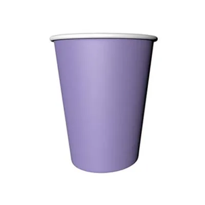 Lila tonlarında parti tabakları ve bardaklar