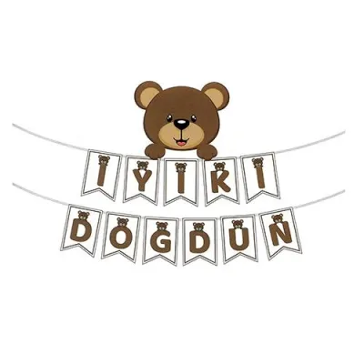 Paket içinde Little Bear temalı iyi ki doğdun yazısı tek tek harfler ve ip bulunur.