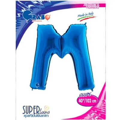 M Harf Folyo Balon – Mavi – 100 cm (40 inch)