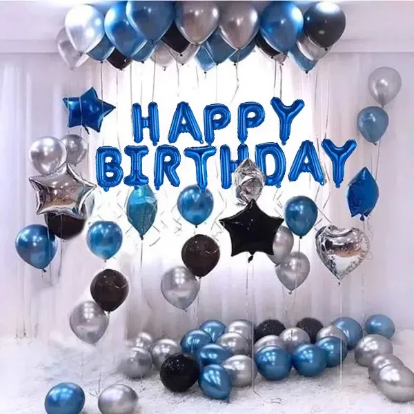 Mavi Gümüş Siyah Doğum Günü Süsleri Kombini Set içeriği;