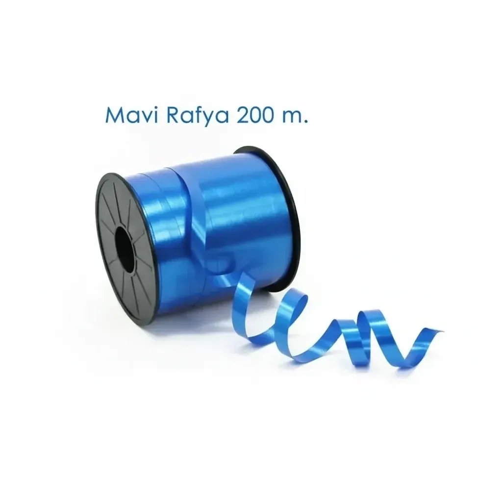 Mavi Rafya (200 Metre - 8 mm), balon bağlama, hediye paketleme ve parti süsleri hazırlarken sık kullanılan rafya ip modellerinden biridir.