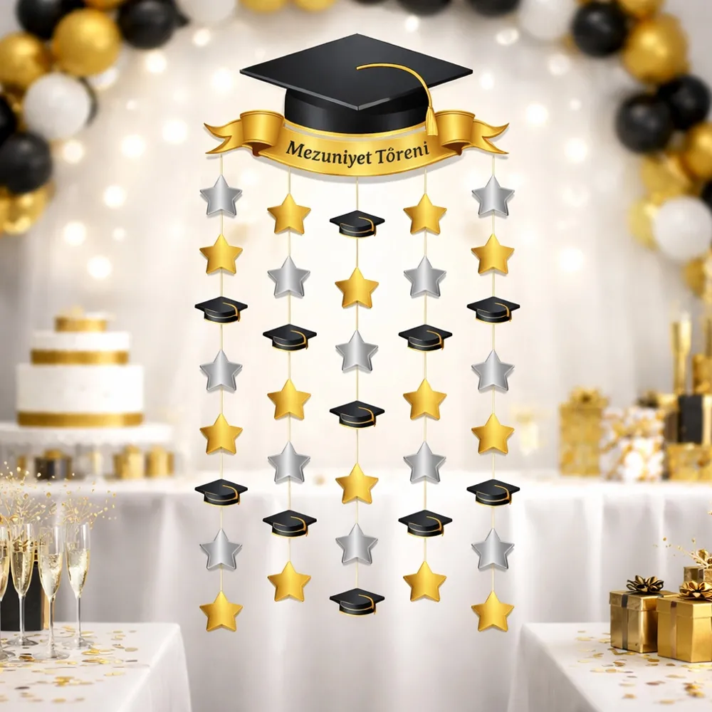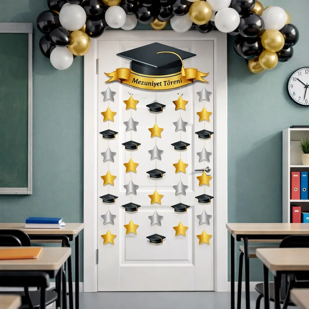 • Mezuniyet partileri için özel tasarlanmış duvar ve kapı fon süsüdür