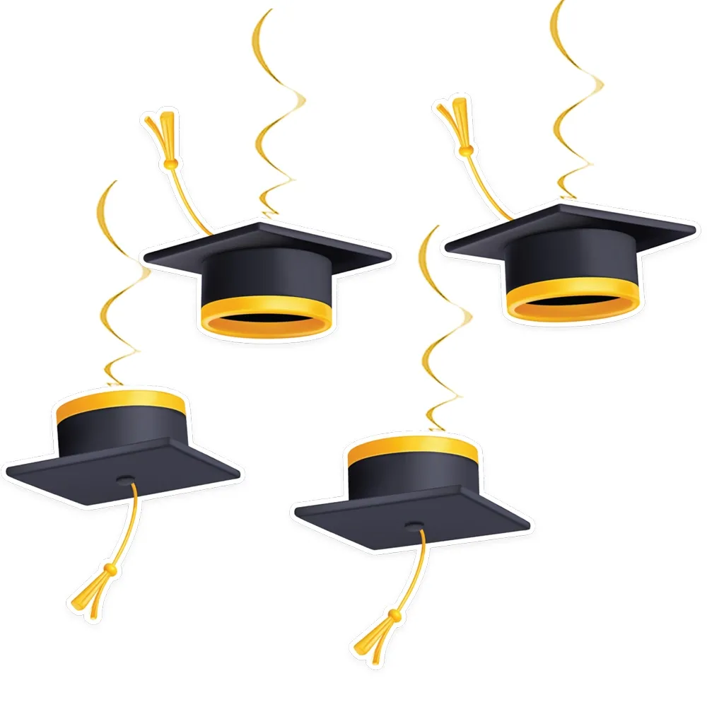 Mezuniyet temalı kep asma süs seti, kutlama alanına hareket ve bütünlük katar. Paket içerisinde yer alan 4 adet süs, tavan ve dekor alanlarında kolayca kullanılabilir. Mezuniyet partileri için ideal bir tamamlayıcıdır.