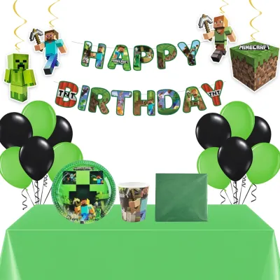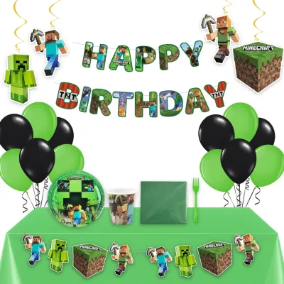 • Minecraft parti seti, balon ve banner ürünleri ile uyum sağlar
