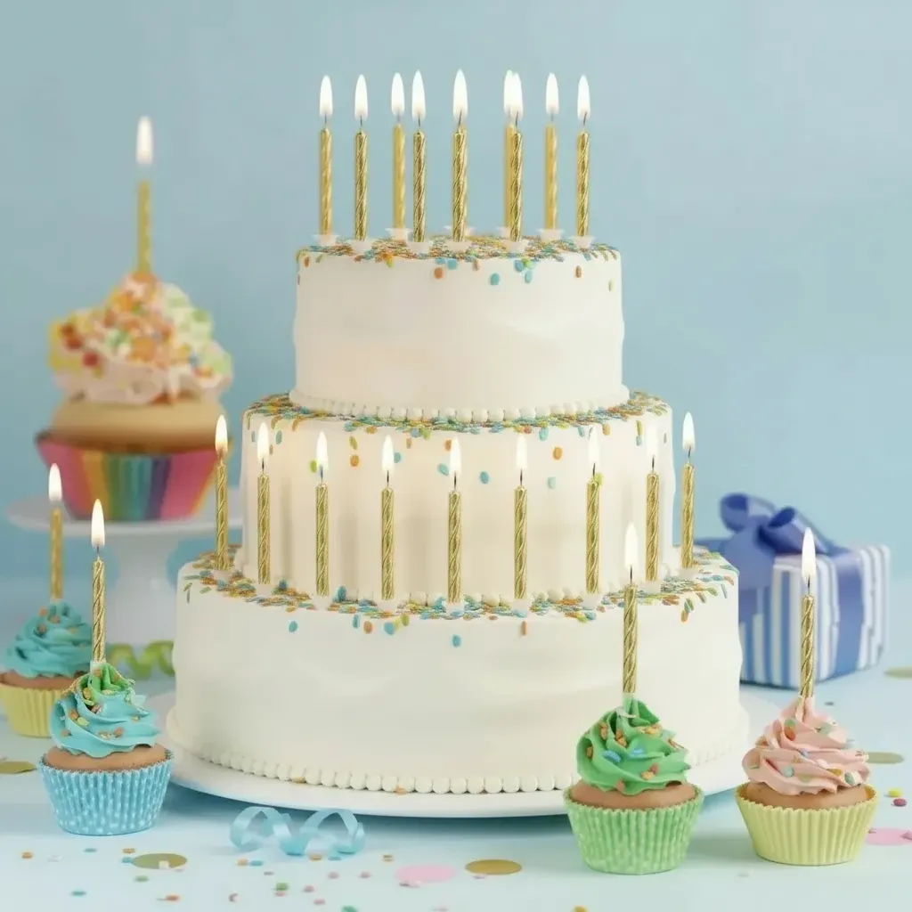 Paket içeriği ;10 adet Metalik Gold Renkli Spiral Mum 10 Adet ( 7.5 cm )