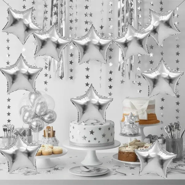 Mini Yıldız Folyo Balon Gümüş 3 Adet (10 inc-25 cm)